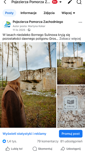 Jednym z przykładów była publikacja pokazująca, jak zmienił się dom oficera w Bornem Sulinowie - zestawiająca archiwalne fotografie z aktualnymi ujęciami. Takie treści budowały głębię przekazu i pozwalały odbiorcom zobaczyć region nie tylko przez pryzmat natury, ale również historii.